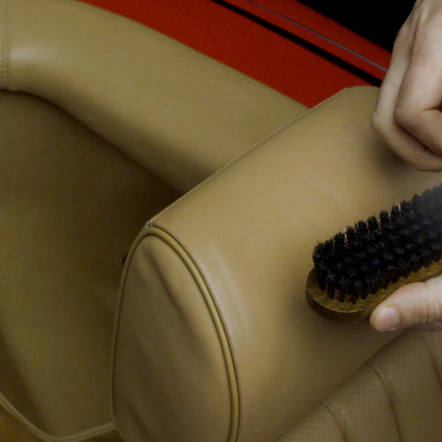 2. Spray Leather Cleaner on the Swissvax Cleaning Brush and work in a circular motion.